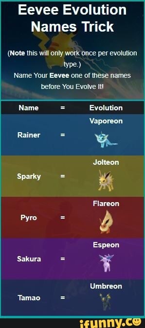 Archeolog Vuci Omezeni Espeon Evolve Name Trick Petrguziana Cz - Twice in a row now, naming eevee rainer made it evolve into a jolteon instead of a vaporeon, guessing that the trick doesn't work anymore??